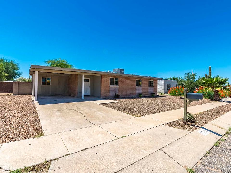 Spectacular 4 bedroom 2 bath home conveniently located close to Davis Monthan & Lakeside Park. Great room off kitchen make this home perfect for entertaining. All new flooring throughout with new carpet in the bedrooms. Kitchen features new cabinets and granite counter-tops and stainless steel appliances. New vanity cabinets, new mirrors & new custom tile in bathrooms. Permitted addition with NEW electrical panel, HVAC and more. Agent/Owner.