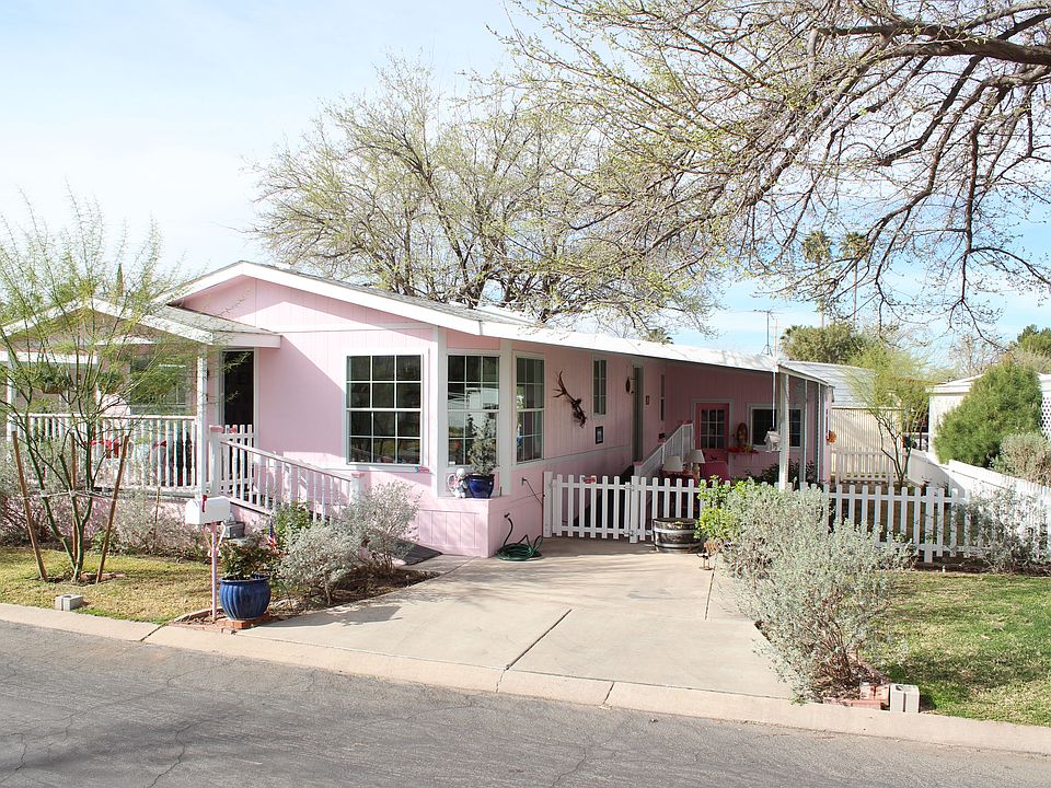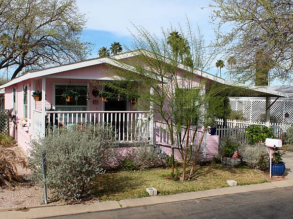 Far Horizons East is the premier 55+, no pet community for active seniors in east Tucson right along 'The Loop', Tucson's shared-use paths with links to Marana, Oro Valley, and South Tucson. This 1995 Cavco has been completely remodeled and updated throughout. This home has it all! Beautiful, bright, open floor plan offers spectacular mountain views. This two bedroom, 1 3/4 bath is move in ready. Laminate floors, beautiful built-in bookshelves, and a high-end electric fireplace. Large fully finished shed with electric and ceiling fan. Beautifully landscaped with east facing front porch. Some appliances included. The home has been totally re-plumbed, extra insulation added, new sprinkler system, and new fence. Custom kitchen has top-of-the-line 2 burner gas stove top, built-in micro/convection oven, custom shelving, and new wiring and plumbing at dishwasher and disposal connection. A MUST SEE!!! OWNER WANTS TO SELL! CALL ME TODAY AND MAKE AN OFFER!!! Lot rent, security, and trash is $516.35 includes water and all park amenities. Variable monthly expenses are electric, gas.