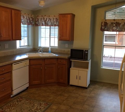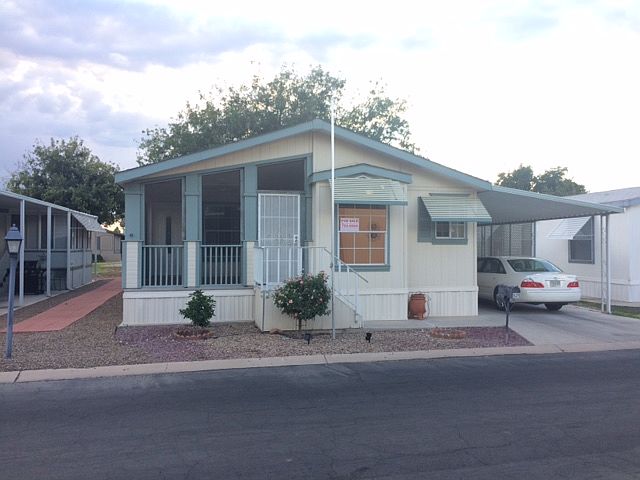 Excellent 2005 Cavco doublewide with enclosed front screened porch 2 bedrooms and 2 baths Tape and textured walls and ceilings All appliances include a side by side refrigerator with water and ice, gas stove, dishwasher, microwave, and washer and dryer This home has 6 ceiling fans, which improves heating and cooling efficiency Master bedroom has a large walk in closet with shoe and clothing rack Master bath has a full walk in shower and linen storage Hall coat closet Spacious from kitchen and living room Separate dining room area Large 54 ft carport awning that covers an attached 12x12 matching storage shed Patio awning covers the 12x13 front screened in porch Lots of quality wood kitchen and laundry cabinets Large pole in front for a flag Tile look vinyl in kitchen, laundry , and baths Carpet in the living room, dining room, and both bedrooms This is a quality manufactured home at an affordable price in the premier adult park in Tucson Ready for occupancy Reduced to $64,900! For more, call Mark Allen, Broker @ (520)977-4584. Available for occupancy