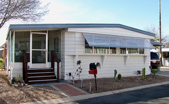 Far Horizons East is the premier 55+, no pet community for active seniors in east Tucson. Here’s a custom built manufactured home that has been well maintained and updated throughout. This 1970 Elkhart double-wide has over 1500 sq ft of living space that includes a large living room (14’x23'), master bedroom (13.5’x15') and a 9’x15' Arizona Room. The large windows in the living room and AZ Room have been replaced with low-e double pane windows. A large 10×12 Tough Shed was added in 2014, a new water heater in 2015, and a new dishwasher in 2016. Sitting on a beautiful corner lot it has a drive-through driveway and a screened-in porch. This home won’t last long! Call today! Typical monthly costs: lot rent $489.00 (water and sewer included) security $19.00 trash $ 8.35 gas & electric - based on Utility Companies Published Single Family Dwelling Rates