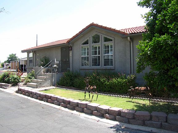 Far Horizons East is the premier 55+, no pet community for active seniors in east Tucson right along 'The Loop'. This large gorgeous Cavco manufactured home has plenty of room with 1568 sq ft. You will feel at home right away with tape and textured walls, beautiful ceiling fans, custom window shutters, and luxury appointments throughout. The tiled roof, mature landscaping and detached garage make this one of the premier homes in the community. This home has been continuously upgraded and well maintained. Typical monthly costs: lot rent $489.00 (water and amenities included) security $19.00 trash $ 8.35 gas & electric - based on Utility Companies Published Single Family Dwelling Rates