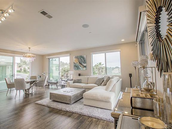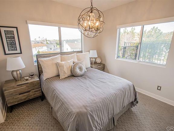 Luxury View Property in La Costa, Carlsbad located across the street from the Omni La Costa Resort and Spa. Built in 2017, 180 degree views of the golf course and La Costa Hills abound where the Rat Pack from Hollywood first settled. This unique property is a luxurious and elegant townhome. Replete with a rooftop deck with unparalleled views toward the ocean. 10 minute drive to the beach in Carlsbad/ Encinitas. Less than 5 miles to the beach as the crow flies. It offers a sophisticated lifestyle with features that cater to both comfort and modern living. 4 bedrooms, 3.5 bathrooms, primary suite with large bedroom and bathroom ensuite. 4 stories with full bedroom and ensuite bath located on first floor. Smart home features include USB fast-charging wall outlets in every room, dimmer-controlled lighting throughout, and an EV charging outlet in the attached two-car garage. California closets, central vac system, stainless KitchenAid package at kitchen, counter depth refrigerator, high-end whole house Puronics water filtration system (reverse osmosis at kitchen sink and salt based), high end shades, chandelier in dining, can lighting, fresh paint and pile carpet in bedrooms, luxury vinyl throughout common areas, central VAC system, washer and dryer and 2 car attached garage. 4th level is approximately 350 square feet. Don't miss this one!!!