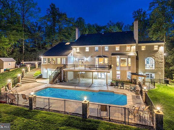 Enjoy wonderful privacy and spectacular Potomac River views in this updated brick and stone villa sited high on nearly 1 acre in the Langley School District and backing to 31 acres of Fairfax County parklands with walking trails along the river. Encompassing 7 bedrooms and 7.5 baths and spanning approximately 9100+ finished square feet across 3 levels, the home's fabulous features include a new gourmet kitchen with quartz countertops, Wolf and Subzero appliances; expansive renovated deck; windows, roof and oversized gutters replaced within 8 years; a gorgeous new, white marble owner's suite bath; and a BALLROOM! The 2-story foyer and center hall staircase serves as the reception area, then leads to a private office with built-in shelving/cabinetry and the grand ballroom to the left, while the living room on the right stretches the width of the home and features a wood-burning stone fireplace. The gourmet kitchen with large center island stands open to the family room (also with fireplace), while 2 large bay windows maximize light and views. From the kitchen, the expansive deck overlooks the pool, patios, and fully-fenced rear yard, with the woodlands and Potomac River beyond. Upstairs, a large owners suite includes separate sitting room with vaulted ceiling and dormer windows, a magnificent remodeled marble bath with separate shower and tub, and large dressing room closet. Four additional bedrooms and 2 baths on this level offer ample accommodations. The full daylight walkout lower level features large spaces for recreation, fitness, home theater, several more bonus rooms including a guest suite with access to the pool deck, 3 full baths, a second kitchen with bar, and generous storage spaces. Other details which set this home apart include beautiful crystal chandeliers and sconces, French doors, cathedral ceilings, main level bedroom, bay windows with deep sills, rich hardwood flooring, generator, security system, and 2-car garage. There is also a circular drive and extra parking areas framed by retaining walls, a storage shed, fully enclosed deer fence, and flagpole.