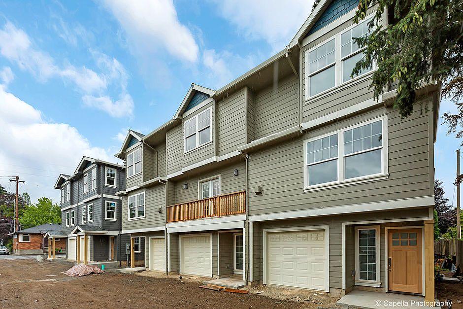 Gorgeous contemporary town home in Mt Tabor! Open floor plan filled with light. Private end unit set back off Division. Chefs kitchen, quartz counters, Acacia hardwood floors, gas fireplace and deck overlooking fenced backyard, perfect for entertaining. Dual master suites on top floor w/ walk in closets plus 3rd suite on ground floor, perfect for guests, home office. Minutes to all the shops and restaurants in Montavilla and Mt Tabor Park! [Home Energy Score = 8. HES Report at https://rpt.greenbuildingregistry.com/hes/OR10167231]