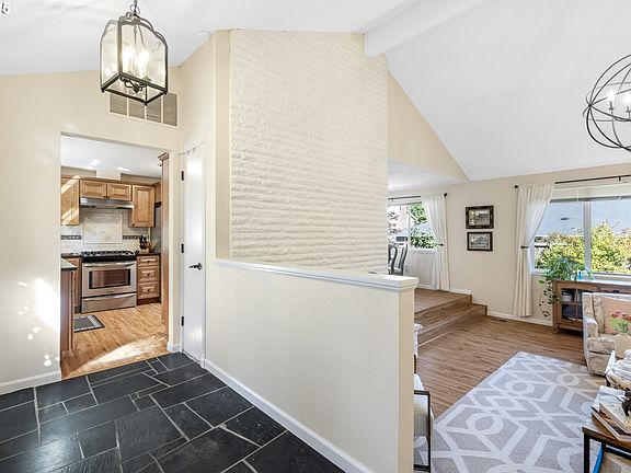 Huge stone fireplaceUpdated kitchenSpacious deckFamily roomVaulted ceilingsLarge primary bedroomPlenty of storage