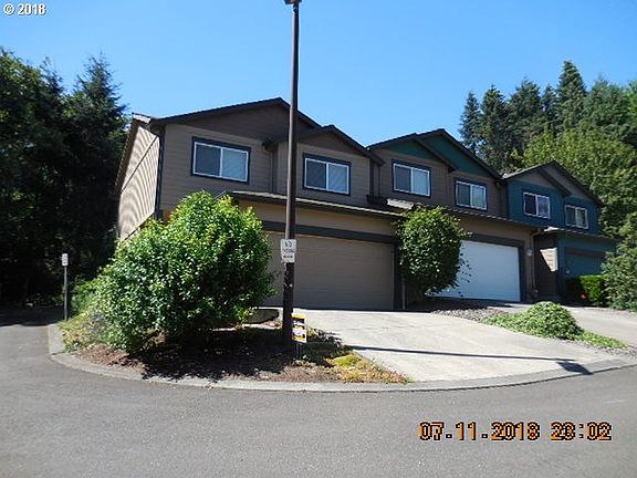 Very convenient & quiet Tigard End Unit location near Durham Grade School on dead end street. French doors off living room open to small, fenced backyard with English garden beds & patio. French doors from upstairs balcony off of master suite w/walk-in closet. 2 Car Garage. Easy access to I-5, 217 & Bridgeport. A/C. Washer/Dryer stays with home. Kitchen appliances are all newer and SS. Gas fireplace in living room.