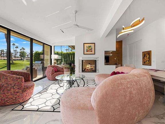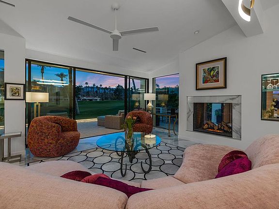 Welcome to a true masterpiece at the newly renovated exclusive community of Desert Horizons Country Club. Stunning is the best word to describe this luxurious 3 Bedroom, 3 1/2 Bath custom-designed home where every detail has been crafted to create an unparalleled lifestyle of luxury. Ideally located on the 6th hole of the world famous Ted Robinson designed golf course which showcases a picture perfect view of Mount Eisenhower and the Santa Rosa Mountain range. This home has an extraordinary backdrop while entertaining family and guests in the expansive living area, featuring custom-designed furniture, a see-through fireplace along with a walk up dry-bar with a wine fridge and separate lounge area. The custom residence was completed to perfection in January of 2024 and boasts exquisite 48'' x 48'' Italian flooring throughout the main living space, curb-less showers, Toto Washlet toilets and custom level 5 finish drywall. The Gourmet kitchen features a walk in pantry, custom furniture cabinetry, high end porcelain countertops, bespoke pendant lighting and plenty of storage. The primary suite exudes a luxurious hotel-inspired atmosphere, with double pocketing doors, sumptuous custom-designed carpeting, and a spacious walk-in closet. The en-suite bathroom is a sanctuary of relaxation, showcasing custom tile walls, a double vanity, a walk-in shower, and an indulgent tub. Don't miss out on this opportunity as this one will go fast!