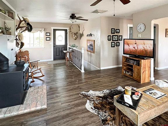 Beautifully remodeled 3 bedroom/2 bathroom home on 3.64 acres with large shop, horse setup, and irrigated pasture! Home features 1,728 sq ft with a main floor master, beautiful updated kitchen, dining, and living room with a cozy wood burning stove! Large picture windows to take in the expansive Grand Mesa and valley views, and allowing in plenty of natural light! Walk-out basement features a family room with pellet stove and office cove, two non-conforming bedrooms (lack of windows), and large bathroom with double vanity! Every inch of the home has been recently updated and redone for maximum efficiency! Nicely enclosed carport attached to home with easy access to a HUGE partially covered deck, further expanding the amazing dining and entertainment space, plus additional storage! Matching stucco shed sits near the home with the spacious 30'x32' shop just beside that! The large shop has 220 electrical service, a 30 amp full RV hook-up and RV deck that comfortably sits under one of the two 18' overhangs and looks over the seasonal pond! (Income potential!!!) Approximately 2 of the 3.64 acres are irrigated with gated pipe, planted in a grass hay, plus a complete horse/livestock setup is already in place! Tack shed is situated near horse pens with a covered saddle and shoeing space, still leaving plenty of room on the property for additional parking & dedicated gardening. Fantastic country location just minutes to the town of Delta, medical offices, shopping, and schools, yet far enough out to fully enjoy the quiet, views, and everything Western Colorado has to offer!