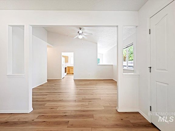 Move in ready near the Boise foothills!  This well-maintained, single-level town home in NW Boise is located just minutes from hiking trails, golf courses, shopping, the greenbelt, and parks. Perfectly situated on a corner lot, connected minimally only with neighbors garage.  The open floor plan features vaulted ceilings, luxurious new flooring throughout, fresh interior and exterior paint. spacious kitchen that has lots of storage and natural light. The split floor plan's large primary suite, includes a deep walk-in closet. The backyard is low maintenance, private and fenced, offering just enough space for relaxation and tranquility. This home is a gem and wont last long!