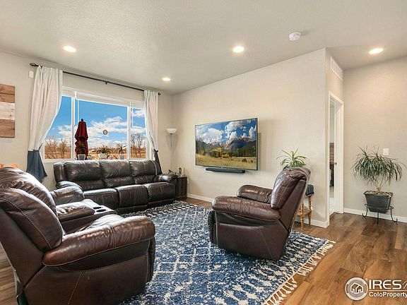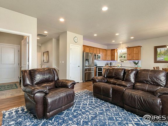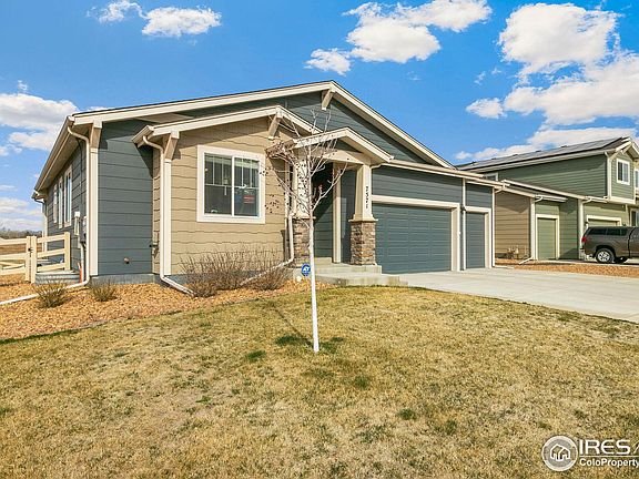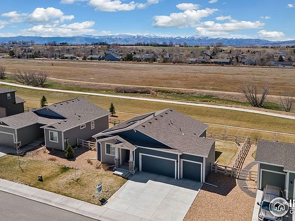 Nestled in the serene community of Wellington, this ranch-style, 3 bed, 2 bath home offers a perfect blend of comfort and peace. Enjoy the amazing mountain views from your covered back patio, which faces west and backs to open space, providing both privacy and natural beauty. The included solar system($42k investment and paid off at closing) ensures utility cost savings and the potential of enjoying utility rebates! Inside, the open floor plan and nice flooring create a warm and inviting atmosphere. The kitchen features granite countertops, stainless steel appliances, an island, pantry, and again the beautiful views from the large sliding glass door. The primary suite includes a spacious bathroom, walk-in closet, and the always calming views out the large window. Downstairs, you'll find an open canvas with the potential of a large living space, 2 more bedrooms and a bathroom. An attached 3-car garage offers ample space for vehicles and storage. Find a social atmosphere just a couple short blocks away at the Harvest Village Community Pool where enjoying hot summer days will be a breeze. Within walking distance, you can find parks, a grocery store, a disc golf course and Rice Elementary. What more could you ask for!
