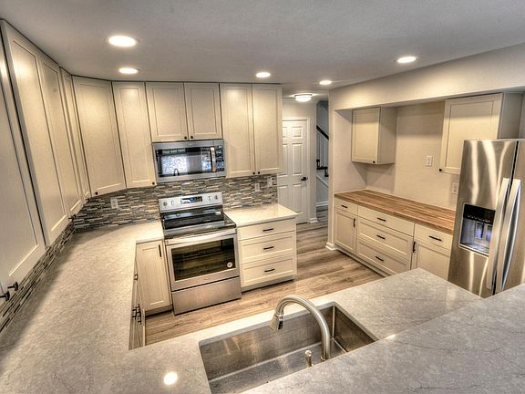 SPACIOUS, FRESH, QUIET--THIS LARGE, BEAUTIFULLY RENOVATED HOME IS READY FOR YOU! At just over 3000 square feet , this single family home is in the lovely, private neighborhood of Hillcrest at Homestead. The all new interior sports elegant laminated driftwood floors and carpeted bedrooms. The kitchen boasts all new cabinetry and stainless appliances as well as Quartz and butcherblock counters. The breakfast bar opens to the adjacent eating space or small sitting room. From there it is two steps to the patio! The living room and combined dining room enjoy a gas fireplace. A powder room, large laundry room with new washer and dryer and large closets, and an attached two car garage complete the first floor. Upstairs, a large open family room is surrounded by bedrooms and a second full bath. The master bedroom's en suite bath includes a free-standing slipper tub, walk-in marble tile shower, private commode and two vanities as well as 2 closets (one a walk-in). The full basement is thoughtfully divided into a finished flex-space--family room? 4th bedroom? office? (carpeted, book shelves and 2 closets) and an unfinished storage/mechanical room. The house fronts onto a large grass common area. The backyard is recently xeriscaped for low maintenance and includes an enlarged patio, a shade tree, lovely shrubs and plantings, a raised garden for vegetables or flowers, as well as new fencing. The HOA common swimming pool is just around the corner for easy access. Fresh, updated, quiet, spacious--this easy living could be yours! Owner pays HOA; tenant to pay all utilities. No smoking of anything inside or out. No subletting including VRBO, Air BnB, etc. Pets considered with an additional deposit. Tenants must abide by the rules and regulations of the Homeowners Associations.