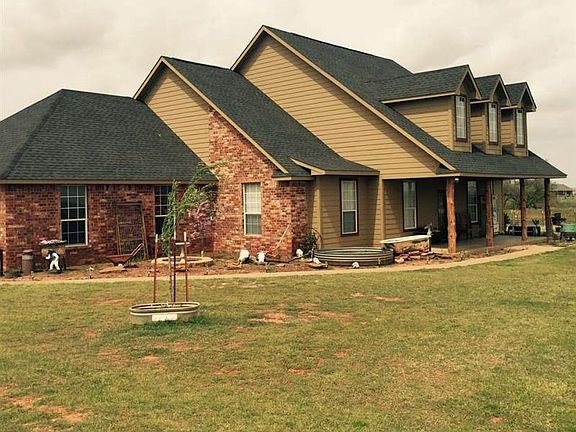 Great open concept home with tons of natural light. This home is located on 25 acres with a large pond, 30x80 workshop, livestock barn, chicken coop, in ground pool & plenty of room to roam! Newly updated flooring (no carpet in the home). New highest rated galvanized painted steel roof put on Oct 2020. New HVAC 2018. Entire property fenced and cross fenced with gated entry. Oversized Master suite in a separate wing of the home that offers a sitting area, tray ceiling, his and hers walk in closets, soaking jetted tub, separate shower, and private water closet. Downstairs there is also 2 larger bedrooms both with walk in closets, each room has its own sink and a Jack-n-Jill style bathroom connects these rooms. Off of the main living area enjoy plenty of natural light with floor to ceiling windows over looking the in ground pool, views of the witch it’s mountain range and the back acreage. A 1/2 bath perfect for guests and easy access for swimmers. The downstairs also offers a large office just off the farmhouse foyer. There is a nice sized laundry room with plenty of storage. Adjoining the home is a 2 car oversized garage that has a walk in safe room built into the home structure. With this, there is no need to go outside during a storm or underground as it is rated for F5 tornado. Up stairs there is a bonus room, easily used as a bedroom and a large loft overlooking the downstairs open concept living/kitchen and windows with a stunning view to the east. Large front porch with country koi pond and landscaping. Enjoy hosting or family entertainment out back on the oversized concrete patio with custom design inlay. A covered porch accessible from the main part of the home or master suite complete the area around the in ground pool. Sweeping skies will take your breath away, especially with sunrises and sunsets. A view of Mount Scott to the north east and you can see all the way to Duncan looking east from the upstairs windows. The is a wonderful property move in ready. You will not find another gem like this!