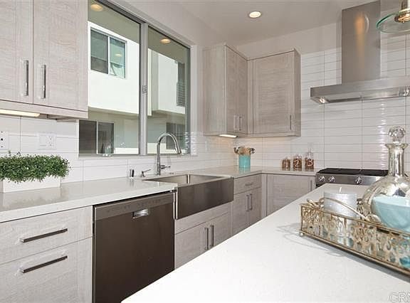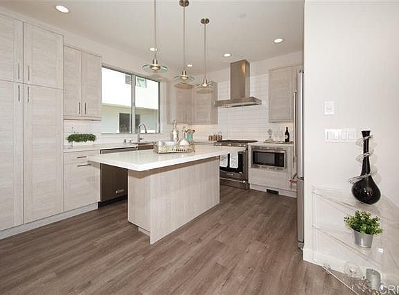 Luxurious 3 bedroom 3.5 bath condo overlooking the La Costa golf course. This unique property features a roof top deck & amazing modern architectural design. Features include quartz counters, chef's kitchen with SS appliances, wood laminate flooring, warm grey tones, elegant cabinetry, LED lighting, balcony, 2 car garage, central vacuum, electric fireplace, custom bathrooms, and so much more. The location is ideal and close to beaches, freeway and top rated schools. Is NOT furnished. Tenant pays all utilities.