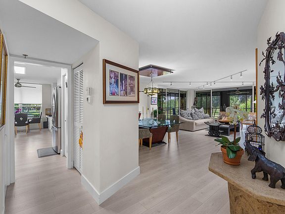 Luxurious expanded Regency condo at Boca Pointe. This 3 bd 2.5 bth floor-plan offers a spacious entertainers layout with a wrap around glass enclosed patio with panoramic golf and tree top views opened to the formal living & dinning room. Beautifully updated contemporary white kitchen with black granite counters, tile backsplash, breakfast nook and built in desk area. All updated stainless steel appliances including a newer washer and dryer. Stunning Master suite; Custom California style walk in closet. Luxuriously tiled master bathroom, custom wall to wall vanity with quartz counters. New Luxury Vinyl Plank flooring throughout the unit. Endless storage throughout the unit. 3rd room currently an office/den. AC updated 2 years. Smooth modern ceilings with added LED lighting throughout. Regency at Boca Pointe is a 24hr guard gated neighborhood. Only 2 units per floor. Short walk from condo lobby to the community pool. Unit comes with an assigned covered parking spot. Optional Country Club Memberships available. Joining the club is not mandatory.