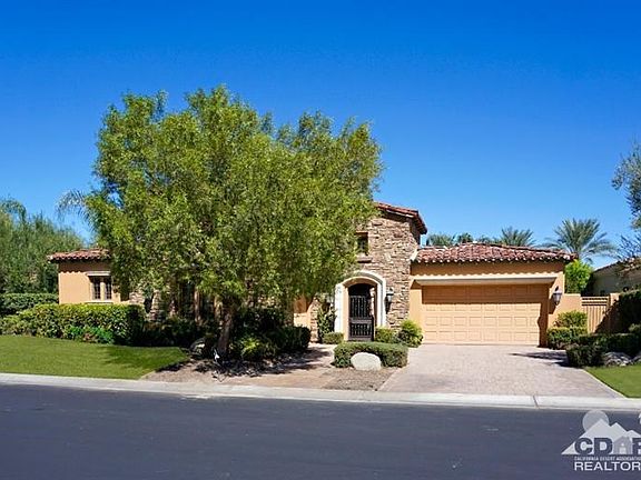 Offering the finest in indoor and outdoor Desert living, this wonderful home at Toscana is a true gem. Stone details highlight the Tuscan architecture with a grand portico that leads to the courtyard, large side yard and the main entrance. The open plan is ideal for entertaining and beautiful stone floors, lighting, hand crafted built-ins and intricate tile details are just a few of the many custom touches throughout the home. The gourmet kitchen offers a large island and a charming breakfast nook. Outdoors, covered patios provide comfortable spaces for dining and lounging while overlooking the custom pool, spa and the Jack Nicklaus Signature South Course. The master suite features a luxurious master bathroom. The home offers many spaces for guests with a private, detached guest house with sitting room in addition to two guest rooms in the main home, each with their own en-suite bathroom.