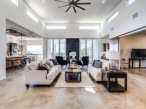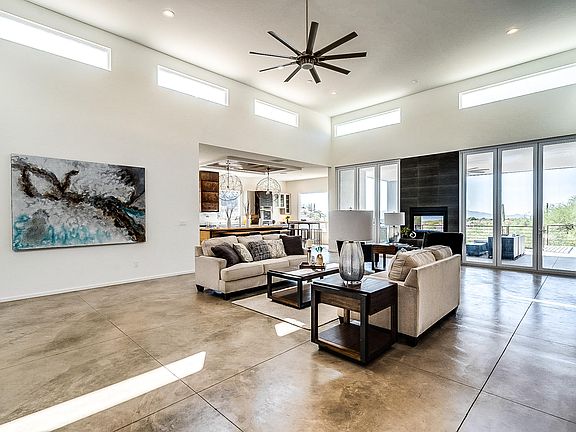 This amazing modern design offers majestic views of the surrounding mountains as well as the city lights. Easy to maintain finishes and large patios offer relaxed lifestyle. Floor plan: 3,225 Sq Ft of living area, 720 Sq Ft of exterior living space and 670 Sq Ft garage equaling a combined sq ft area of 4,615 Sq Ft. 3 large bedrooms in a popular split floor plan wrap around an open common space; media room, gourmet kitchen. Large open windows with views of the mountains and the city create an experience of connectivity with nature as well as a sense of serenity. Enjoy the cool breezes sipping a favorite beverage while watching spectacular sunsets from the privacy of your covered patio w/ outdoor kitchen and bath or star gaze with friends on the sun deck above. Completed Oct 25, 2019