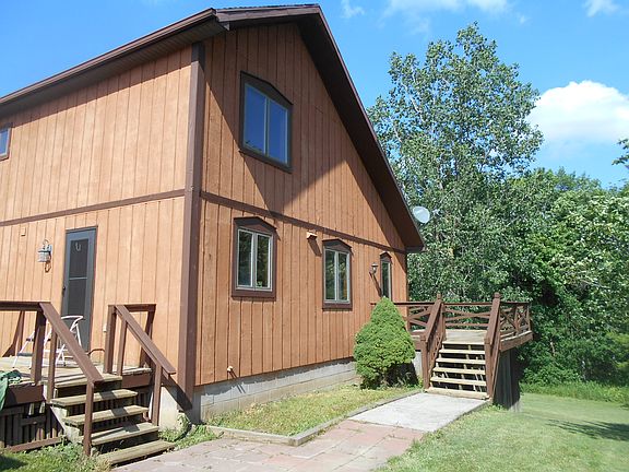 A 2 story contemporary home. Open floor plan w/many windows. A large wrap around deck opening to a very private yard w/many mature trees, and overlooking a creek running along the side yard.