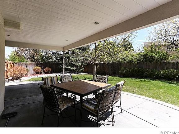 REMODELED 4-BEDROOM HOME IN SOUTHGLENN / KINGS RIDGE NEIGHBORHOOD! TUCKED AWAY IN QUIET CUL-DE-SAC, HOME BOASTS AMAZING LUSH BACK YARD, GORGEOUS STAMPED CONCRETE COVERED PATIO, MATURE TREES, GARDEN AREA! Originally a model home, many updates include: double pane windows, Andersen French Patio doors, 17x25 ft covered concrete patio off kitchen w/ recessed lighting, concrete front porch, quality bamboo floors in kitchen, newly installed shower in master bath. You will love the deep back yard and opportunity to entertain outdoors! Lg TUFF Shed w/ storage area. Basement also has abundance of storage and study/craft room. Great neighborhood, friendly neighbors, excellent Littleton schools. Just a block from Arapahoe High School & Fire Station. Immaculate and lovingly maintained!