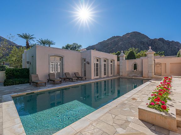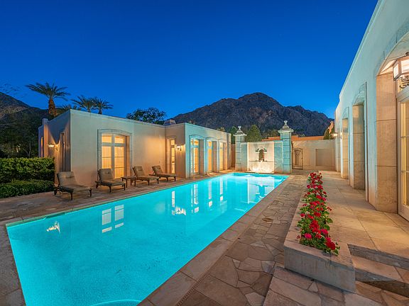 An amazing artistic masterpiece in the heart of Eldorado C.C. This grand and majestic mansion was lovingly built with 18th Century Portuguese architectural style and designed for elegant entertainment. Finishes imported from Portugal, Italy, France and Germany. Hand crafted Venetian plaster walls, Brazilian wood doors, beautifully crafted wood ceilings and hand laid stone floors from Portugal. There is a main house, separate Casita and service quarters with their own entrance. The house features a main kitchen with multiple dishwashers, a professional chef range, and a prep kitchen which includes a wine cellar and silverware closet and separate bar area. There is a men's & ladies separate powder rooms off the main entrance and bar. Master retreat has a safe room w/ alarm, office area, large walk-in closet w/ coffee bar, fireplace, book cases and seating area. Master bath beautifully finished with gold fixtures and sconces, steam shower, jetted soaking tub and two separate sinks. There are four guest bedrooms each with their own bathrooms. One includes a breakfast bar in the entry, walk in closet and fireplace. The bath has steam shower, sink from Germany & lights from Italy. Separate casita has 3 beds, 3 baths, kitchen, dining/living area & fireplace which opens up to the outdoor pool. Each room has its own A/C unit. There is a an indoor gym, 2 service bedrooms, separate mechanical room, water filtration system & outdoor service toilet. 2 car garage plus golf cart garage.