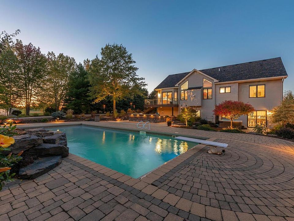 Absolutely stunning remodel set on picturesque & private 10-acre lot! This beautiful executive rambler w/ an abundance of detail has so much to offer inside & out w/ over $250K in updates & bosting a large open floor plan w/ soaring vaulted ceilings, tons of natural light throughout, a stunning gourmet kitchen completely renovated & featuring all-new custom cabinetry, a large center island, granite countertops, & top of the line stainless steel appliances, a spacious living room w/ stone surround fireplace & floor-to-ceiling windows overlooking the exceptional lot & beautiful countryside, generously sized master suite w/ vaulted ceilings, walk-in closet, & private bathroom w/ double granite vanity, & huge walk-in shower, fully finished LL w/ spacious rec room & wet bar that walks out to your resort-style oasis complete w/ in-ground salt-water pool, custom outdoor kitchen & bar w/ built-in grill & granite counters, & heated outbuilding for all your toys! See supplement.