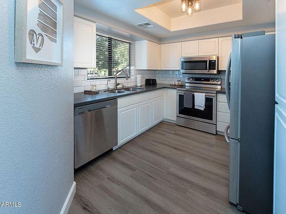 BEAUTIFUL UNFURNISHED 3 bedroom 2 bath home is updated & upgraded throughout! Modern kitchen & bathrooms, stainless steel appliances, tile backsplash, quartz counter tops and spacious dining & living area that provides a comfortable space to relax.Crown molding, trending wood-look floors, and fireplace complete this modern gem. Large master retreat has sliding glass doors that allow tons of natural light, ceiling fan, walk-in closet, and a full en suite w/double vanity. Enjoy the weather on the private covered patio, swim in the heated pool, or workout at the gym/tennis courts. Close to everything - Old Town, Scottsdale Fashion Square, Kierland & Scottsdale Quarter, Golf, Hiking, and more. It doesn't get any better than this. View today 12 month lease