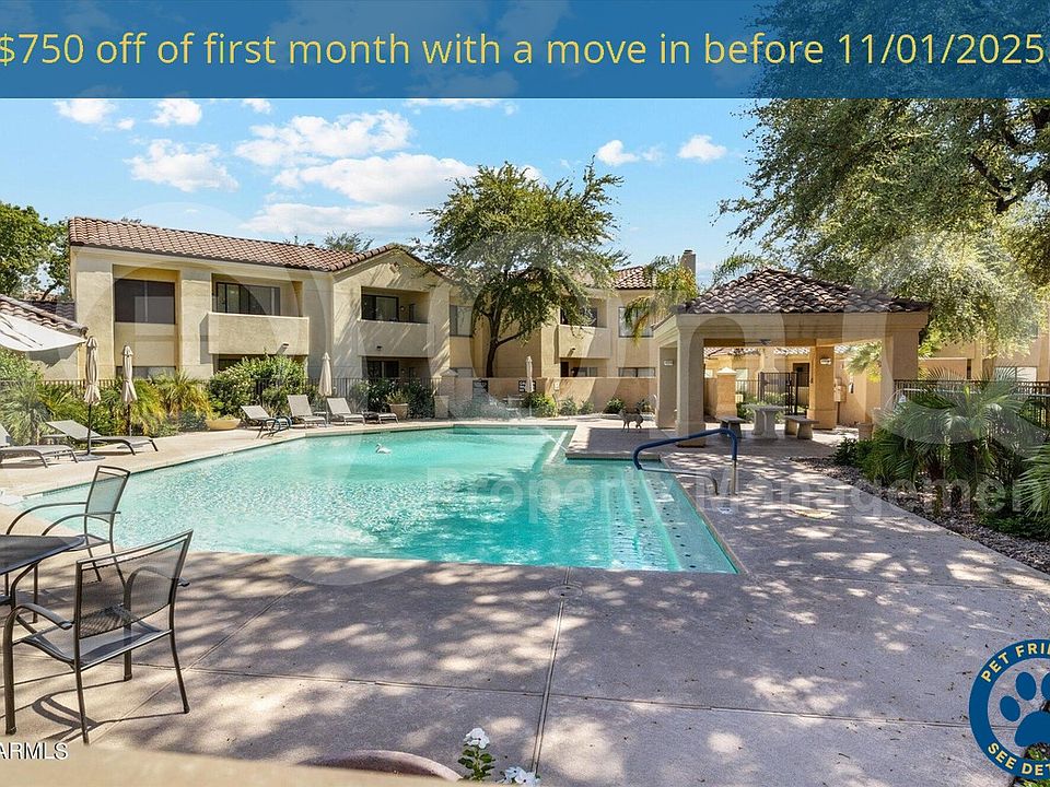 ** $750 off of first month with a move in before 11/01/2025. ** 1,075 SQ FT! 2 bedroom, 2 bath condo unit in Scottsdale's Sienna Condominiums! Desirable single story floor plan with welcoming great room entry. Charming kitchen with included appliances, & ample cabinetry/countertop space! Great room living/dining with cozy fireplace. Neutral interior with tile flooring in all the right places! This home offers 2 nicely sized bedrooms, each with ample closet space. Blinds! Included washer/dryer. Enjoy a private balcony + assigned parking! **Water/Sewer/Trash Included** Sienna Condominiums is a desirable community offering gated entry, community pools + spa, sports courts, fitness center & biking/walking trails. Great Scottsdale location with easy AZ-101 access! Pet Policy: Dogs and Cats Allowed with the following exceptions: Pets will be considered upon approval! APPLICATION: $65 Application Fee Per Applicant 18 years or older (Nonrefundable). Please allow 24 to 72 business hours to process the Application once all required documents are submitted by all applicants. LEASE LENGTH: 12-month Minimum (Longer Lease Term may be negotiable) INITIAL MOVE-IN COSTS: Upon application approval, a nonrefundable Holding Retainer will be required to secure the property and will be applied towards the move-in costs. The Holding Retainer amount is determined by the type of Security Deposit option you choose. Applicants can choose between a traditional Security Deposit which may be 1 times the monthly rent but not greater than 1.5 times the monthly rent (75% refundable) or a Security Deposit Alternative program (only available on long-term leases of 12 months or more). A $250 one-time lease preparation fee as well as the first month's rent is due prior to move-in. If the Applicant has a Pet, $150 Non-Refundable Pet Fee per pet. RECURRING MONTHLY COSTS: There is a 3.3% Administration Fee. If the Applicant has a Pet, a $35 Pet Rent Per Pet (Does Not Apply to Assistive Animals). All On Q Property Management Residents are enrolled in the Resident Benefits Package for $39 or $49 with pets, which includes liability insurance, credit building to help boost the resident's credit score with timely rent payments, move-in concierge service making utility connection and home service setup a breeze during your move-in, Renter to Buyer program, and much more! *Other terms and conditions may apply. The list price is the base rent and recurring monthly costs may apply. All information including advertised rent and other charges are deemed reliable but not guaranteed and is subject to change. By submitting your information on this page you consent to being contacted by the Property Manager and RentEngine via SMS, phone, or email.
