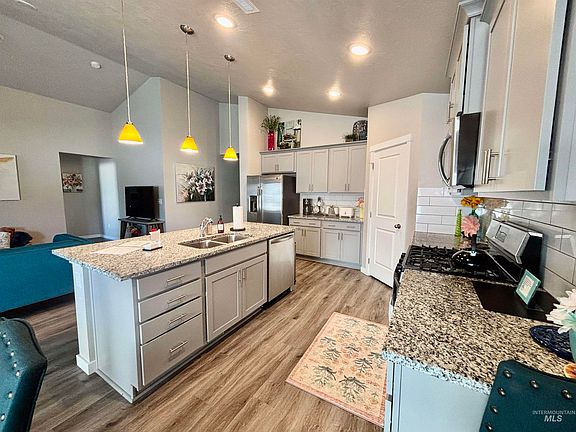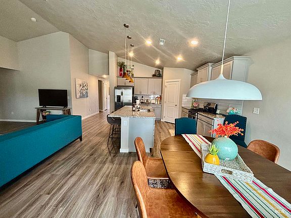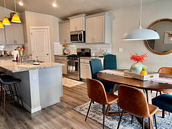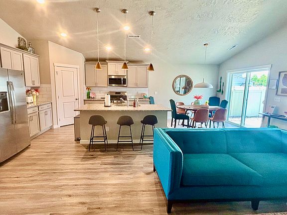 BETTER THAN NEW! This home features 1888 square feet of meticulous design/comfort. The home features 3 bedrooms and a den or potentially 4th bedroom. The solar panels (paid in full) are one of the many features that allow this home to stand out with extremely low power bills. HER-certified energy-efficient home The kitchen is a chef's dream: Stainless appliances, refrigerator included, loads of cabinets, a corner pantry, granite countertops, and gas cooktop. The master suite is one-of-a-kind with a large soaker tub, a separate toilet area with a door, double vanities, a large step-in shower, a HUGE walk-in closet, and bright light. Other amenities includeL: A HUGE laundry room, LVP flooring, custom wood-scrolled wall in master, darling wallpaper in guest room, vaulted ceilings, wooden-like window blinds, and more. The backyard is complete with a pergola over patio, fully curbed and landscaped with a designated fire pit. Enjoy all that the community offers with a pool, too. All furnishings are for sale.