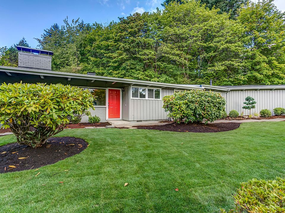 Mid-century 1 level gem in beautiful Raleigh Hills. Completely remodeled including stunning kitchen w/ S.S. appls, granite, built in oven, gas cooktop & new cabinetry. Light drenched rooms w/ vaulted ceilings, skylights & gleaming hardwoods. Large picture windows w/ SW views. Big bonus/family room. Private backyard on 1/3 acre w/ covered patio. New furnace/AC, landscaping, roof, carpets, int/ext paint, fully updated baths & much more.