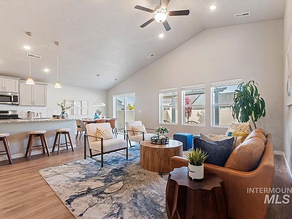Spacious & Stylish, this beautiful home features 3 beds, 2 baths, plus a separate den space perfect for home office, guest room, or 2nd living area. Set on premium lot next to a common area, this better than new 5 yr old boasts many upgrades including solar panels, LVP flooring throughout & so much more! Versatile & functional split floor plan features large great room w/vaulted ceilings, chefs kitchen w/massive island, granite countertops, full tile backsplash, gas range & stainless steel appliances (all included!) Oversized primary suite w/dual vanities, soaker tub, sep walk-in shower & large walk-in closet. 2 roomy additional bedrooms are thoughtfully separate from primary suite for added privacy. The expanded patio with pergola cover, professional landscape w/curbing, new trees & fire pit area is perfect for entertaining. Minutes from schools, shops & commuter routes. Enjoy a wealth of amenities incl community tennis/basketball/volleyball courts, parks & walking paths. Welcome Home!