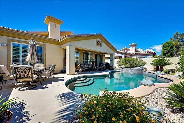 Price reduced!Immaculate!!! Country club living at its finest! Get ready to relax in your beautiful efficient desert landscaped backyard and your newly resurfaced pebble tech pool and spa with cool coat patio. The Misting system will also keep you cool on those warm desert evenings. Inside you have a living room wired for surround sound and tinted windows. 36k put into a new HVAC system with 2 units to keep you comfortable. This home will not last! You must come and take a look for yourself to really enjoy the pride of ownership. The extensive amount of upgrades include: Crown molding throughout, solid wood doors hung and framed professionally, New tile floor in kitchen, water filtration system, overhead garage storage, hot water heater is only 2 years old, pool has variable speed pump with central control for pool, spa and misters inside. The list goes on!!! The 3rd bedroom has been converted into an office but can easily be converted back into a 3rd bedroom.