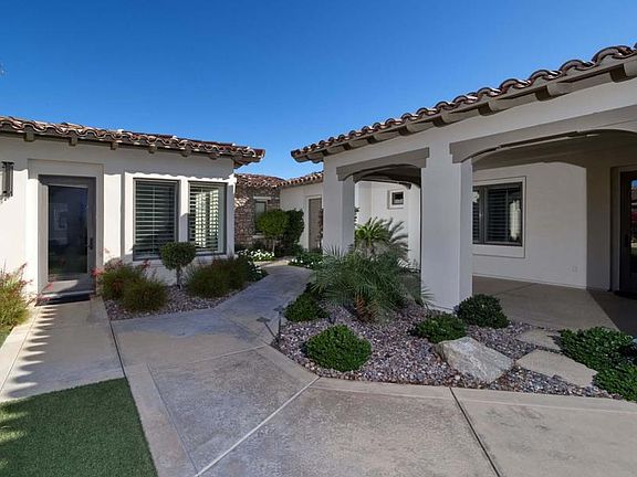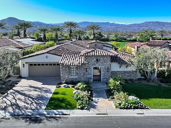 Experience the pinnacle of luxury living in this rare south-facing, meticulously remodeled Plan 621 residence in the esteemed Toscana Country Club. Framed by breathtaking mountain panoramas and expansive vistas across the pristine Jack Nicklaus Signature Golf Course, these views are enjoyed without the sight of other homes to ensure complete privacy. This home is a masterpiece of design and sophistication having recently undergone an extensive nearly $600,000 renovation. Every aspect of the property reflects the highest quality materials and finishes, from custom flooring and elegantly painted cabinetry to striking new countertops and a bright, welcoming atmosphere. The expansive great room stands as the centerpiece of the home, designed for both relaxing family life and grand-scale entertainment. It is surrounded by large windows and new sliding doors that frame the majestic desert and mountain views and open out to a beautifully renovated outdoor oasis. This outdoor space extends the luxurious interior tile under a sprawling veranda to include a newly refinished pool, and custom-designed intimate firepit and built-in BBQ area, perfect for entertaining amid lush new landscaping. Each of the home's bedrooms, including a separate casita, is a private retreat featuring en-suite bathrooms, providing comfort and luxury for family and guests alike. The master suite is a private sanctuary offering direct access to the outdoor amenities and framed by the spectacular backdrop of Mt. Eisenhower. The spa-like en-suite bathroom is equipped with a freestanding soaking tub, expansive walk-in shower, dual vanities, and a large walk-in closet, making it the perfect retreat. This residence is more than a home--it's a fully furnished sanctuary within Toscana Country Club, crafted for luxury living with every detail thoughtfully designed for comfort, privacy, and immediate enjoyment. Embrace a life of sophistication and beauty with unmatched views and exclusivity.