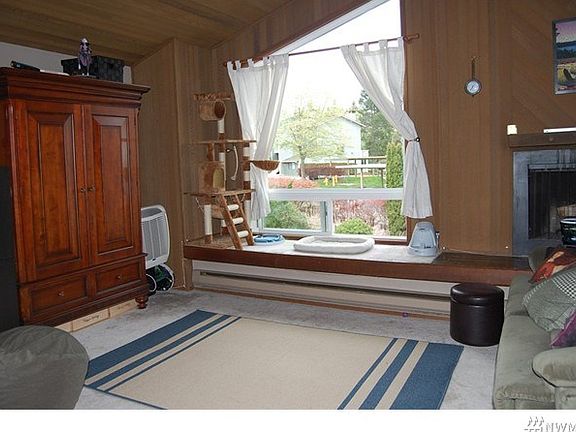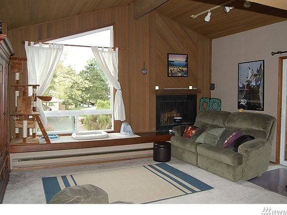 Great top floor end unit with no shared side walls. Feels spacious with vaulted cedar ceiling, large bedroom with lots of closet space and convenient laundry off bathroom. Private deck with storage. Wood burning fireplace and charming window seat. Newer vinyl windows. All appliances stay. Convenient location near Microsoft, 520, Downtown Redmond, Marymoor Park and Trails. Covered parking. No Rental Cap !