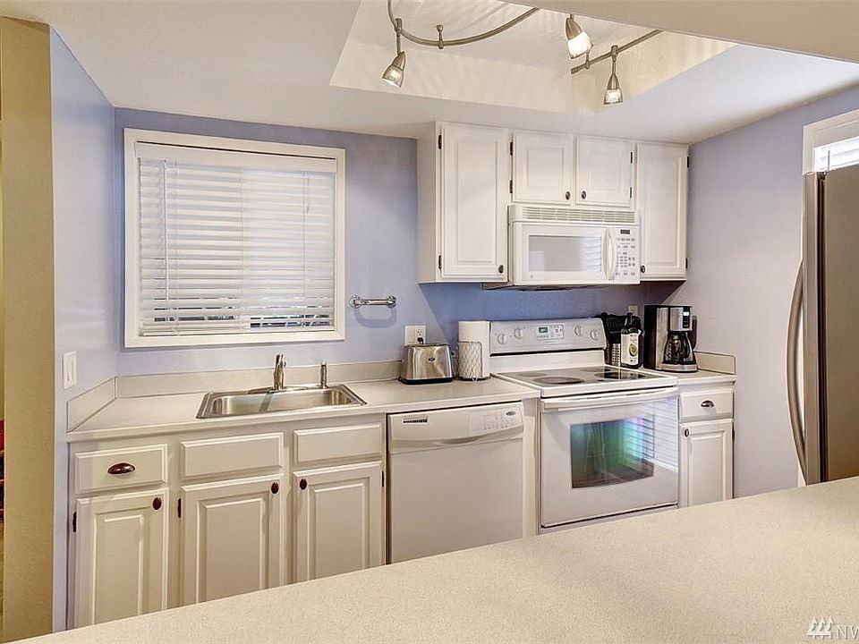 Just a few minutes' drive to Town Center, Marymoor Park, Grass Lawn Park, and Microsoft. Convenient access to Highway 520. Recently upgraded with laminate flooring, new carpet in both bedrooms, and a wood-burning fireplace. Modern kitchen with white cabinets and a stainless steel refrigerator. Master bedroom features large windows and a spacious walk-in closet. Two full bathrooms (one en-suite, one shared). One assigned covered parking space. Ample visitor parking available. Owner pays for garbage, sewer, and water. Tenant responsible for electricity, internet, etc.