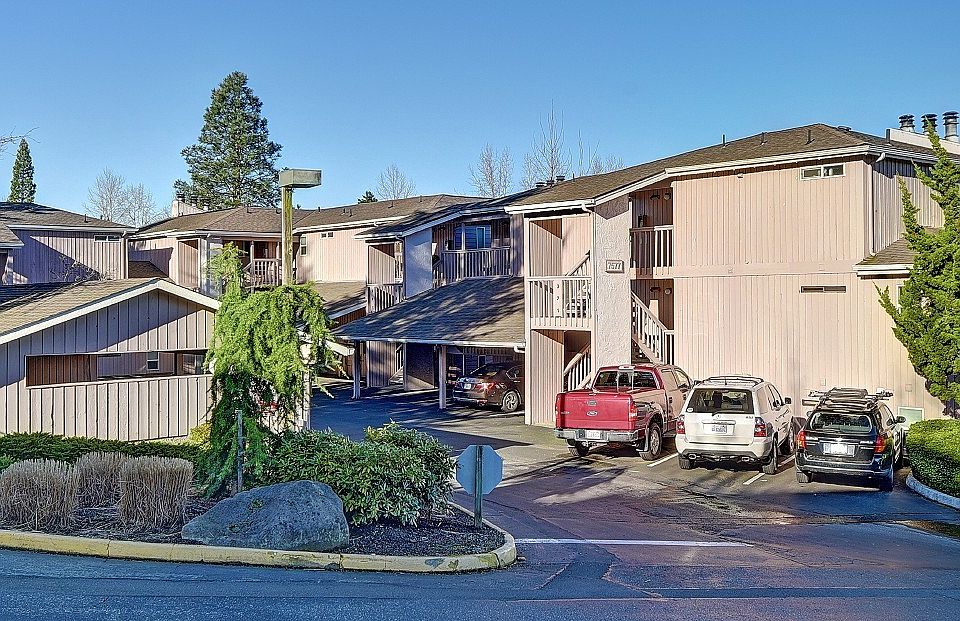 Amazing close in location -Moments to Downtown Redmond & 520 Fwy access. Ground floor unit with patio & lawn space -Feels like your own back yard! Updated surfaces including laminate flooring and granite countertops. Built in cabinets in living room area complete with fold out work station & media niche. Lots of storage space. Two Bedroom Two bathroom -Master suite has attached bath. Covered carport/reserved parking just a few steps from the front door. Great for investors -No rental cap. Excellent Lake WA Schools