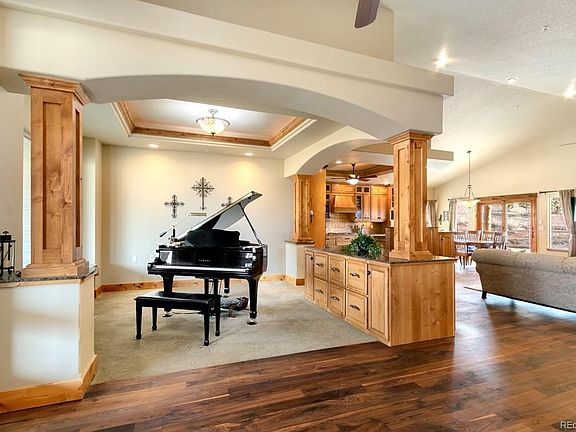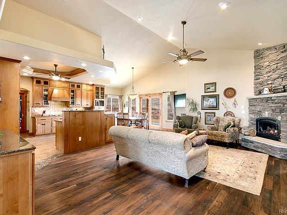 Who say's you can't have it all? This Semi-Custom sits on 3 acres and over looks 300+ acres of permanent conservation that is route for the Elk migration. Easy commute Boulder and Ft. Collins, located minutes from downtown Loveland and close to Carter Lake. The details of this home are truly a must see. Views from every each of the 2 patios and expansive front porch. The home features 4 bed, 3 bath, walk out basement, Green Certified, surround sound through out the home, including patios, porch and garage, walk out basement, tons of storage, adorable chicken coop, fenced in area for the dogs, tons of parking. Huge walk in pantry and laundry room. This is a must see!