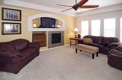 Main level has fireplace and entertainment center in the living room Amazing kitchen has granite counter tops wood floors walk out to backyard crown molding light rail and pull out drawers in cabinets Updated laundry room also on main floor Upper level has a magnificent master bedroom with a three sided fireplace and sitting area Mater bath has vanity tile floors and walk in closet Two more bedrooms and a full bath make up the upper level Basement has large family room This home has