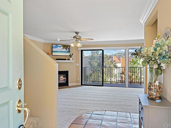 Welcome to this beautiful bright home with west-facing golf course views from multiple balconies! It’s a perfect space to unwind and enjoy the good life as a Carlsbad homeowner. This turnkey 2-bedroom, 2.5 bathroom home is designed to feature indoor & outdoor living. When you open the front door, your eyes will travel directly through the windows to the sunshine and green hills of La Costa. It is easy to entertain with the large kitchen and after dinner, you can relax by the cozy fireplace and watch the sun set on the palm trees just outside the windows. The dining area offers plenty of room to gather and enjoy the space, especially with a half bathroom on the main level. The two large bedrooms upstairs have their own balcony and bathroom. The master suite is a welcome retreat where you can rest and rejuvenate. New carpeting, recently updated balconies and bathrooms, a dedicated laundry room, great natural light and perfect location all add to the allure of 7578 Gibraltar. Safely nestled within a building of only 8 units, this home is part of a small community with a refreshing swimming pool and golf course views. Enjoy the convenience of being mere minutes away from Carlsbad beaches, restaurants & shopping. Come find out for yourself why you should make this your new home!