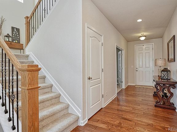This impressive two-story shows like a model home! Located in the heart of popular Cobblestone Ranch, the spacious home provides 3,729 total square feet, with 2,601 above grade and 1,128 in the professionally finished walk-out basement, 5 bedrooms, and 4 bathrooms. Upscale features include newer carpet, wide-plank hardwood floors, an eat-in gourmet kitchen with granite counters and island/breakfast bar, stainless appliances with double ovens and gas 5-burner cooktop, and a walk-in pantry. The gorgeous, mature backyard and deck are easily accessed off the kitchen dining space. The main floor layout is open and welcoming, currently with a fantastic study that can easily be used as a formal dining room, if desired. The open great room showcases a cozy gas fireplace and enjoys surround sound. The upper level includes a sizeable loft, a private master retreat with walk-in closet and beautiful 5-piece bath, 3 secondary bedrooms, a spacious secondary bath with double sinks, and a convenient laundry room. The walk-out basement provides a second family room or recreation room with built-ins, a 5th bedroom with bath, storage space, and access to the ground-level patio and backyard. This incredible space is perfect for a teen or in-law suite. There are wonderful community amenities here, including a pool, clubhouse, parks, and trails. Solar panels are owned, will be paid in full by seller and will be transferred to new owner at closing. Enjoy lower electricity bills without the big upfront cost! This could be the one!