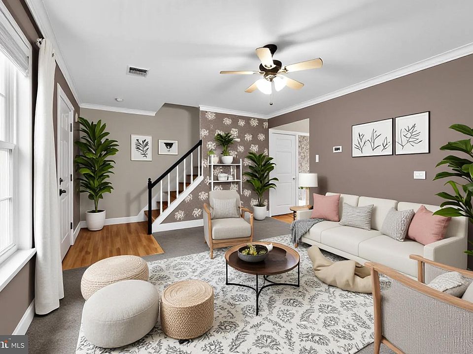 Welcome to 7579 Braemar Ct, located in the desirable Downtown Sykesville! With NO HOA! This beautifully updated and refreshed duplex offers 1,600 SqFt of finished living space. With 3 gracious sized bedrooms and 2 full bathrooms this home offers the perfect amount of space and comfort. Enter into the spacious living room that flows into a large dining room that is open concept with the kitchen. A breakfast bar that defines the two spaces perfectly and has space for 3 bar stools. The large sliding glass door leads to a private deck that backs to woods, Extra privacy! Upstairs hosts 3 bedrooms and a beautifully updated bathroom. With a large second closet in the master bedroom it makes for the perfect potential for an en suite bathroom! Fully finished lower level offers a great recreational space, second living room space, or private bedroom space with a full bathroom, craft room, theatre room, gaming room, the options for the space are endless! A large sliding glass door leads out under the deck to a level concrete padded area great for covered entertaining! A leveled retaining wall was professionally installed to allow for a level space for entertaining, play or whatever your wish may be. Tucked at the end of a cul de sac, with private off street parking for 2! New HVAC in 2019. New Carpet in lower level, fresh paint, roof inspected 2024.
