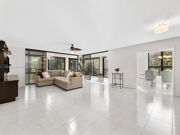 If you want to live in a prestigious gated golf community without having to pay a mandatory membership fee, this stunning 3 bedroom 2 and a half bathroom plus a den is the property for you! This unit offers over 2,500 square feet of gorgeous living space, beautifully redone kitchen with a brand new washer and dryer, and a expansive wrap around enclosed patio. The primary bathroom has been completely renovated. Unit comes with 5 brand new professionally installed TV's. This condo has lots of natural light with south and west facing views. Additionally this unit has two underground garage parking spots 1 & 2. Building has brand new roof, already paid for. Unit is being sold furnished with the exception of the primary bedroom set and living room couch. Monthly HOA includes water and cable.