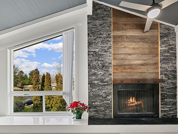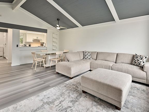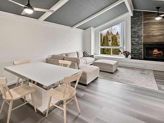 Completely remodeled top floor condo in Gull-Val. Conveniently located near downtown Redmond and Microsoft. This condo has 825 sf, 1 large bedroom plus an ideal bathroom. Recent $100K makeover with all very high-end touches. Chef's kitchen includes luxury appliances, quartz counter tops, designer backsplash, and is open to the combined dining and living rooms that feature vaulted ceilings, fireplace, and a slider leading to a private deck with Cascade views. The entire home has sound proof high-end flooring. Every surface has been touched and improved. Home also has an energy efficient heat pump, wired for wireless connections, new hot water tank, extra storage, and carport parking. Recent exterior work completed.