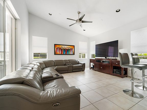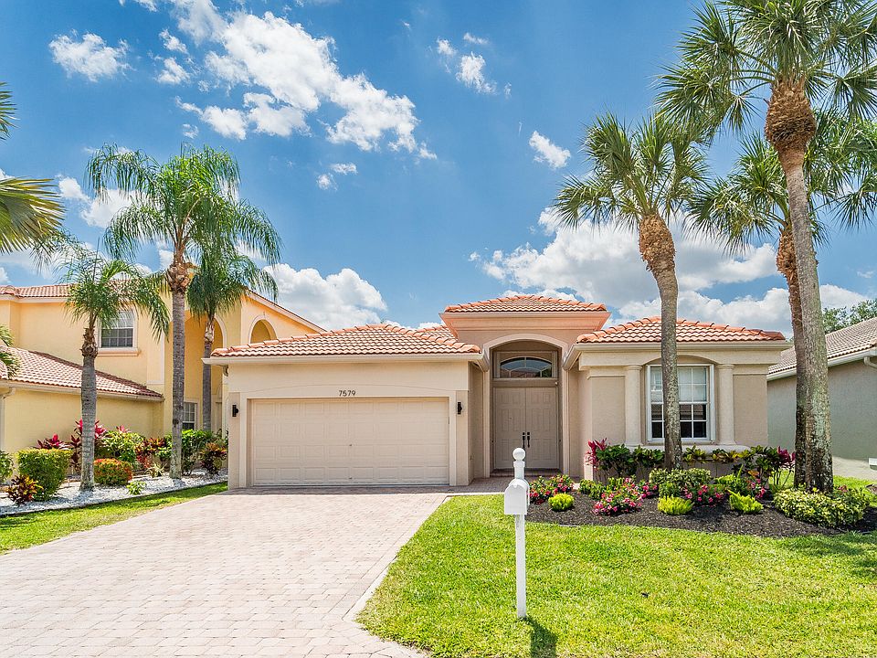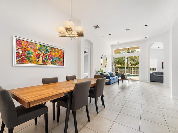 Spectacular 4 BR/2BA Pool/spa home situated on great private fenced lot, no backyard neighbors. Tile thru-out. Updated kitchen features beautiful granite counters and backsplash, New stainless Dishwasher & Refrigerator, cozy breakfast area. Separate dining room. Spacious living & family room with sliders out to covered patio. Newly renovated Master Bed/ Bath with all new tile floors, Quartz counters, custom mirrors with anti-fog and blue-tooth speakers, closets doors, baseboards & more! Interior freshly painted. Exterior painted. Newer Rheem AC & Rheem hot water heater with Eco-net wi-fi, LiftMaster garage door opener system with keypad. Pool/spa with pop-up jets. Wiring for built-in surround system inside & speakers installed on patio. A-Rated schools, 24/guard-gated. Convenient location close to great schools, restaurants, shopping, major airport, beaches, minutes to Wellington Mall. Ask Realtor for complete list of Improvements.