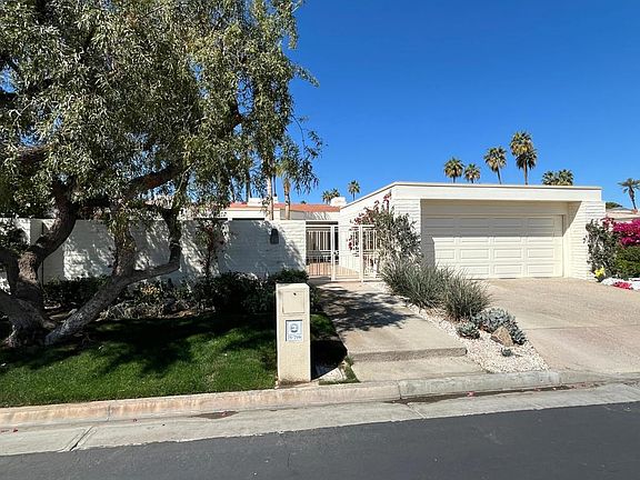 Welcome to your million dollar view desert oasis. Nestled within the prestigious Desert Horizon Country Club, this exceptional 4-bedroom, 4.5-bath home boasts breathtaking views of the fairways and the majestic San Jacinto Mountains. The residence is a perfect blend of elegance, comfort, and modern convenience. Upon entering through the gated courtyard, you're greeted by an inviting entrance that sets the tone for the sophisticated living that lies ahead. The spacious great room features soaring cathedral ceilings, expansive walls of windows, and a sunken wet bar, while framing unobstructed spectacular mountain and golf course views. The primary suite is a luxurious retreat with direct access to the patio, a spa-inspired bath with dual vanities, and a spacious walk-in closet. Three generously sized guest bedrooms each include en-suite baths and walk-in closets, offering flexibility for family, guests, or home offices. Outside, the three patios are the perfect settings to relax or dine while enjoying sweeping fairway views and mesmerizing sunsets. Additional features include a 2-car garage, a golf cart garage (cart included), and newly installed paid solar system. Enjoy the vibrant social community with access to the brand new clubhouse, an 18-hole championship golf course, a state of the art wellness center with pickleball, tennis courts, and 10 neighborhood pools. Outside the gates, enjoy everything Indian Wells has to offer.