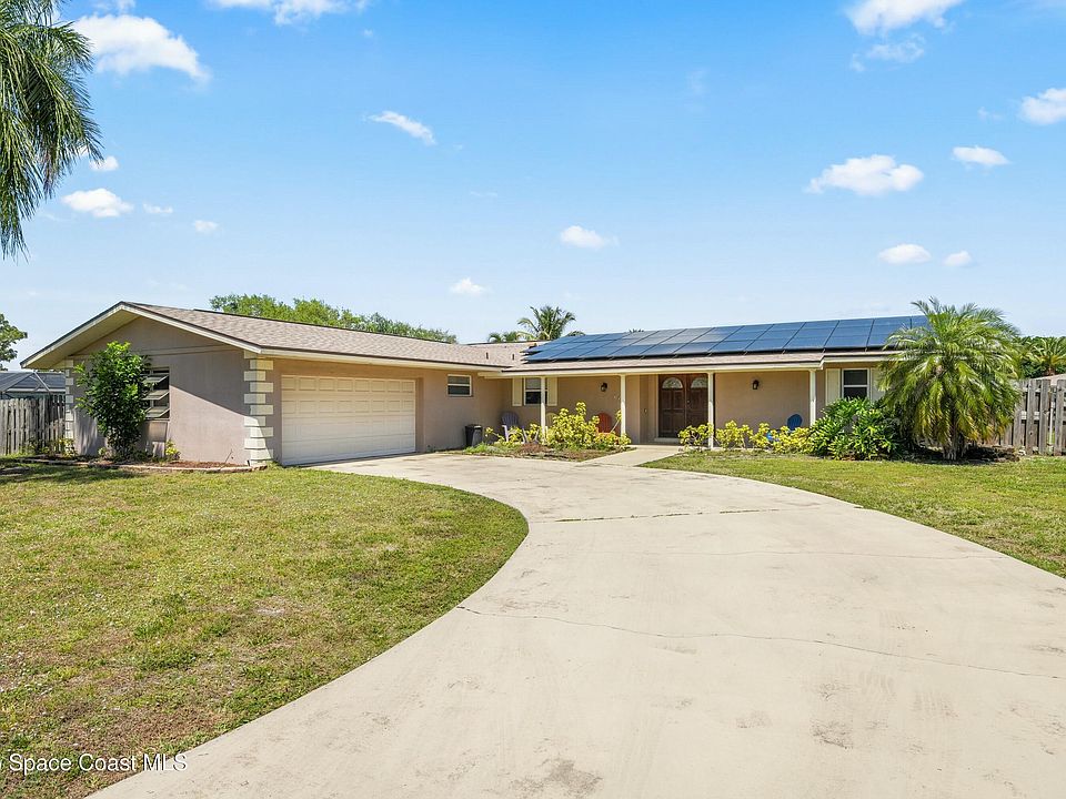 Over 1/3 acre POOL home that will impress you in so many ways! Truly plenty of room for boat / RV and any other toys. No Culver or ditches so easy in & out with double gate. Huge yard fully fenced with fire pit. 2 separate screened in patios with new pavers on each side of pool for lots of fun or entertaining. Also, the pool was resurfaced and retiled. NEW ROOF in 2023 and full home Solar panels that are paid off so you will have almost NO electric bill forever! Now for the inside... over 2200 sq feet that has everything that you want. When you walk in, it's light and bright with all of the living, dining & family rooms that have pool views. Electric fireplace. 4 bedrooms, 2 full baths & a half bath. Wait till you see the room with a wet bar, hung glasses & full wall countertop for all kinds of possibilities including a game room. Undated kitchen with granite countertops, chestnut cabinets and newer appliances. Great neighborhood that is 10 minutes from the beach! Come check it out!