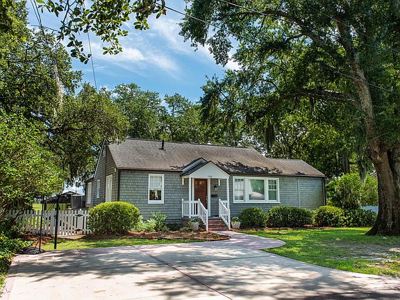 This cedar shake cottage is situated on the banks of the Ashley River, five minutes from downtown. Located at the end of the street, you'll have serenity, quiet, and stunning views of the river, with our amazing city in the distance. Fully renovated, this home has great design with many conveniences. Open to the grand living and dining areas, the kitchen features an open vaulted ceiling, island seating, and updated appliances. The reconfigured master suite has an en-suite bath and large closets. Close to the large utility, and on the other side of the house, there are two more bedrooms with 2.5 baths.Spend time on your private 16x20 ft screened porch, perfect for outdoor cooking and fun. This lot has ample room for an addition or possibly a pool.
