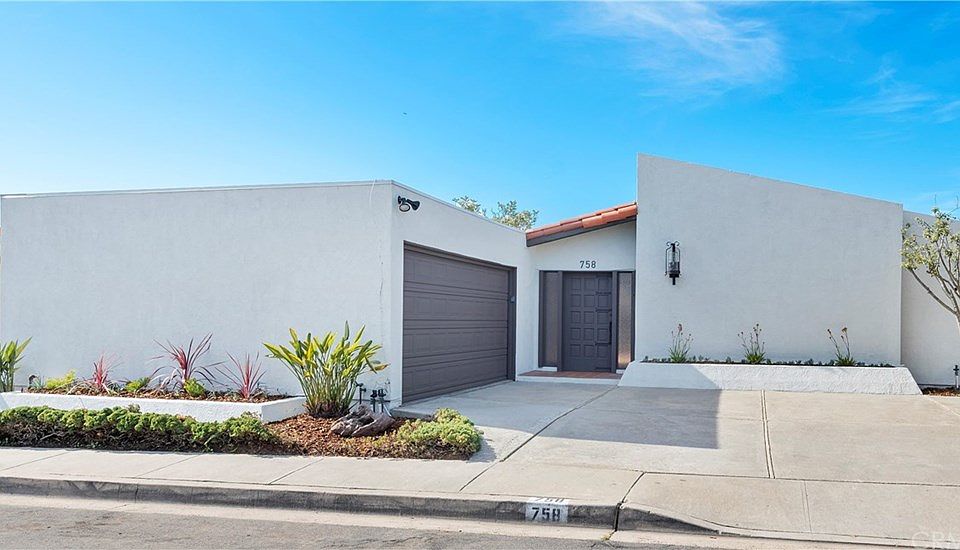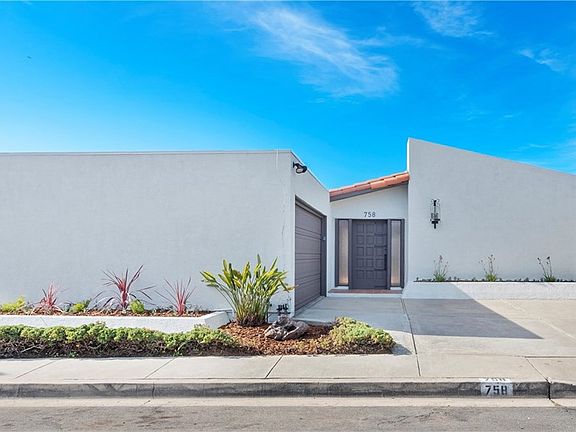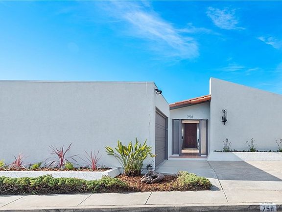 758 Barracuda Way is the perfect blend of panoramic views, ideal layout, privacy and opportunity. An oversized carved wooden door welcomes you into the single level Spanish style home with modern highlights and a casual vibe that features sweeping ocean views, showcasing Catalina Island and the northern coastline. Upon entering the home you are immediately greeted by straight on views of Catalina Island from the expansive living room which displays a majestic fireplace and an open concept with soaring beamed ceilings that also grace the dining room and master bedroom. This 4 bedroom, 3 bathroom home boasts an ideal layout for multiple living situations and entertaining, which is enhanced by its seamless indoor / outdoor flow that takes advantage of the large private gated courtyard and ocean view patio. An outstanding element of the home is the casita which is ideal for so many possible uses and can satisfy an owner's evolving needs. 758 Barracuda Way is move-in ready with all new flooring, freshly painted interior and exterior, new casita and garage roofing, landscaping and so much more while being priced to provide opportunity for additional enhancements compatible with nearby homes. Located on a highly desirable Cul De Sac street in the Portafina subdivision and close to Moulton Meadows Park, there is an abundance of parking supplied by the extra-sized 2 car garage and large driveway. Don't miss your chance to be the next owner of this unique and sought after home.