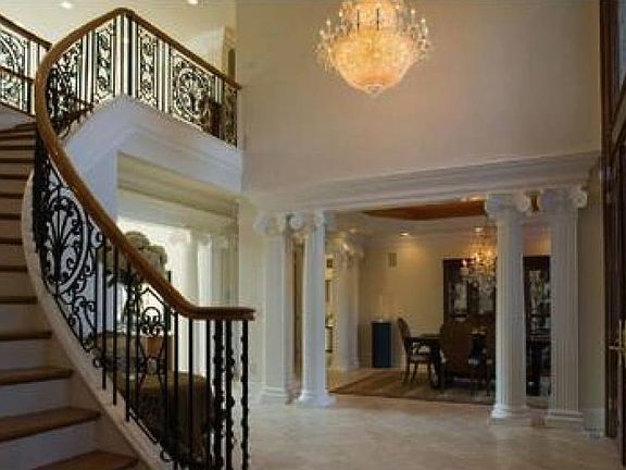 • InteriorFeatures: Ceiling Fan(s), Kitchen Island, Window Treatments, Pantry, Central Vacuum, Recessed Lighting, Walk-In Closet(s), Dining Area, Soaking Tub, Crown Molding, Skylight(s), Wood Floors, Formal/Separate Dining Room, Breakfast Area, Upgraded Countertops, Kitchen - Gourmet, Family Room Off Kitchen, Curved Staircase, Double/Dual Staircase, Water Treat System, Stain/Lead Glass, Spiral Staircase