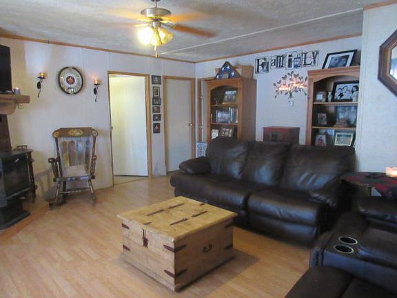 Great 3.44 acre property with home and 2 pole barns. Nice rolling land with view. Completely fenced with cross fencing for animals. Nice rural area. 3 bedroom 2 bath mobile with large living area and master bedroom. Property is being sold ''as-is.''
