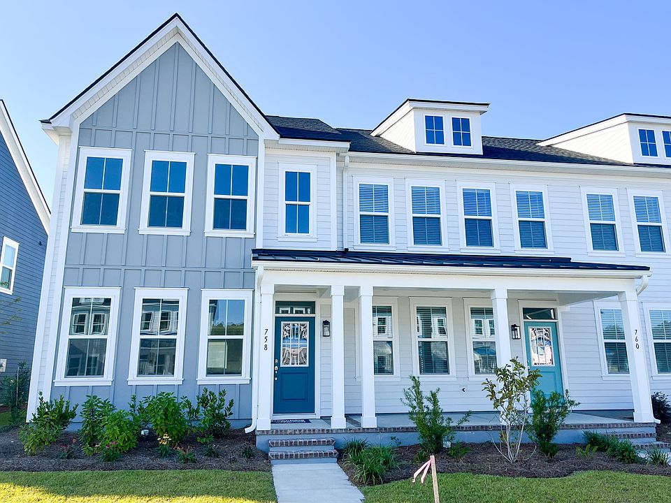 This brand new, 2 level, end unit with 2 car garage is Ready for Move In! Bright open floorplan with rear kitchen featuring Gourmet Stainless Steel Appliances with fridge, quartz counters and white cabinets! Kitchen overlooks rear patio and yard. Luxury vinyl flooring on both levels! Walk to all of the amenities Midtown has to offer including pool, clubhouse, fitness & yoga studios, sports courts, playground and more! Plus just a short drive to downtown Charleston and local beaches! This is home! This is home!