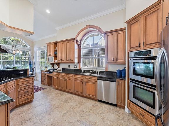Covered pool lanaiLarge pantryGranite countertopsLarge gourmet kitchenLarge bathroomWater viewsHardwood floors